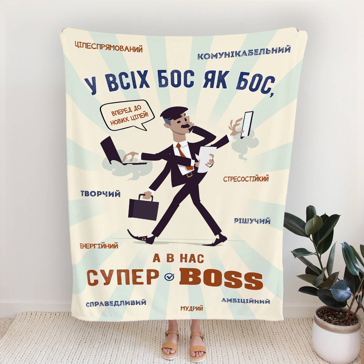 Плюшевий плед з принтом для начальника - подарунок босу [В31683]