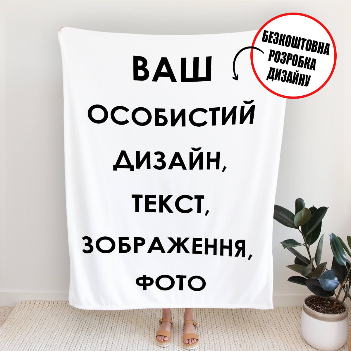 • Ваш особливий дизайн — безкоштовно: фото, імена, улюблені слова чи кольори — ми з радістю зробимо плед саме таким, як ви мрієте.