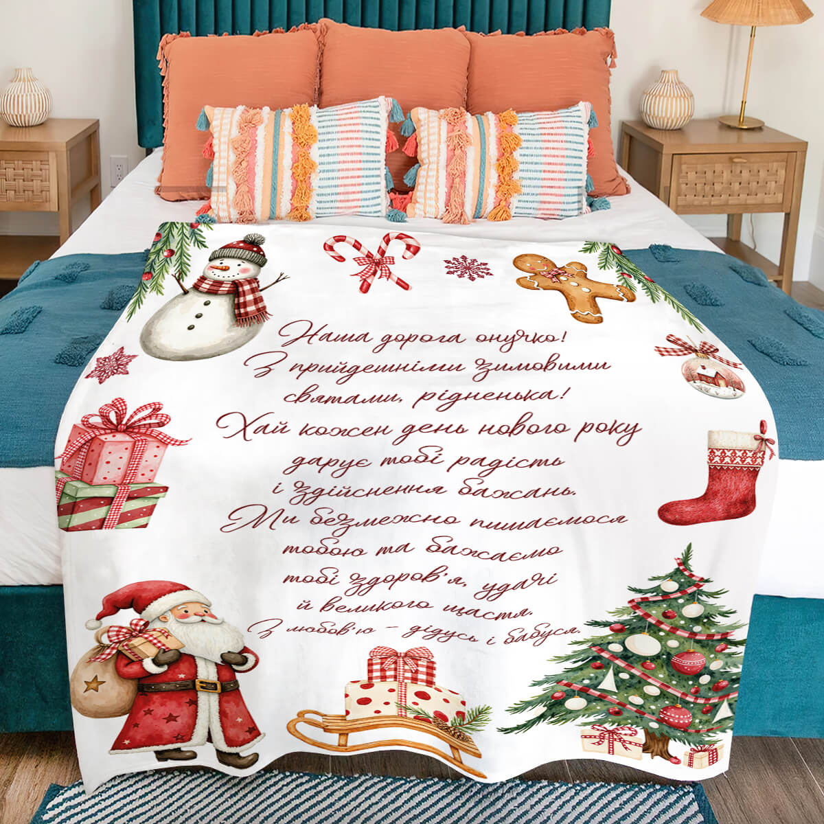 Новорічний плед з побажаннями онуці, подарунок від дідуся та бабусі [L797]